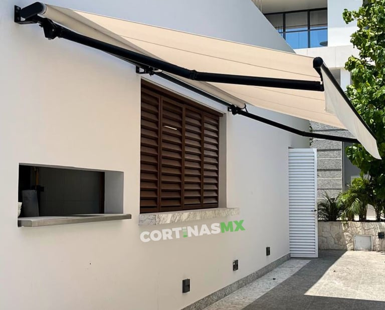 Toldo retráctil para jardin y exterior. Servicio en toda la Riviera Maya